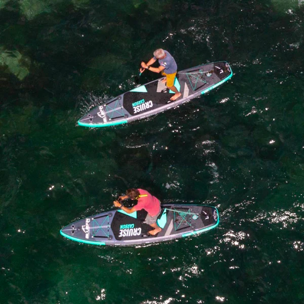 Practicing yoga on a paddleboard enhances your balance, core strength, and flexibility. Bluefin’s yoga-specific boards, like the Bluefin Aura Fit, are perfect for those looking to integrate fitness routines into their paddleboarding sessions.