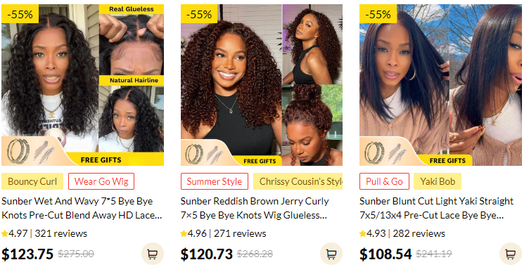Sunber is also known for its clear, honest pricing and frequent promotions. Whether it’s a seasonal sale or an automatic discount, the brand makes it easy to get high-value wigs at up to 70% off retail.
