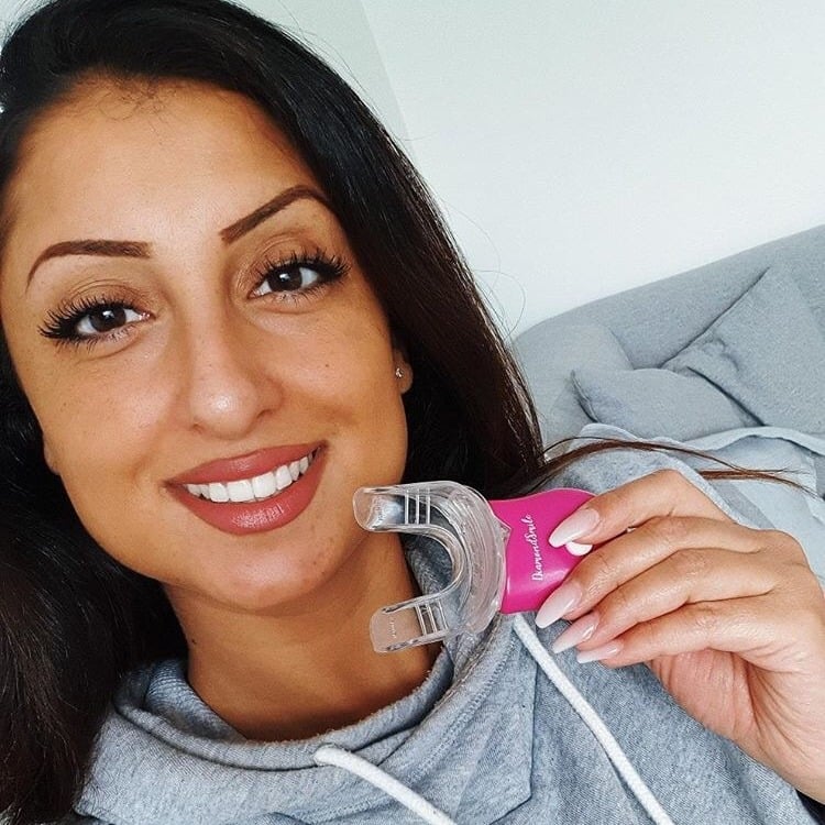 Das DiamondSmile Aufhellungskit enthält ein speziell formuliertes Aufhellungsgel, das in das Mundstück eingefüllt wird. Das Gel enthält Wirkstoffe, die Verfärbungen auf den Zähnen schonend auflösen.