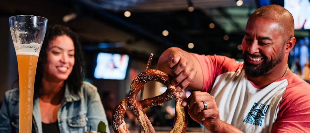 - Yard House – Known for its extensive menu and over 100 beers on tap, Yard House is a go-to for groups who want a bit of everything — from burgers to seafood, street tacos to vegetarian bowls.
