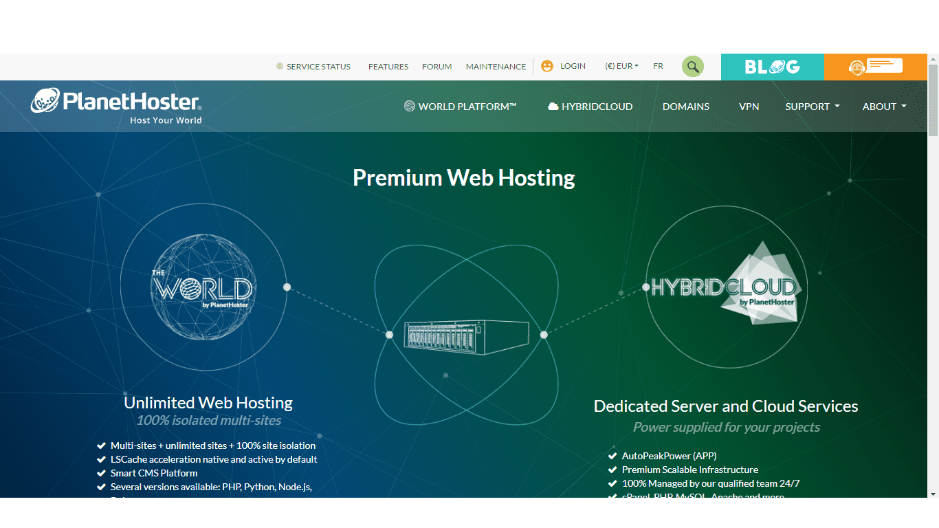 Pour les entreprises ou les sites web à fort trafic, PlanetHoster propose HybridCloud, une solution d’hébergement qui allie les avantages du cloud et des serveurs dédiés.
