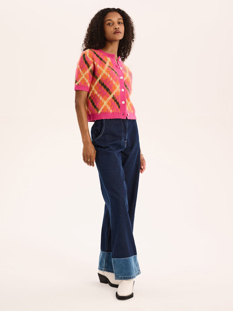 This denim jacket, which became the star of the pop-up, is crafted entirely from recycled fabrics. OMNES UK’s design philosophy emphasizes not only style and comfort but also environmental responsibility. Each jacket is a testament to the brand’s dedication to reducing waste and promoting recycling in the fashion industry.