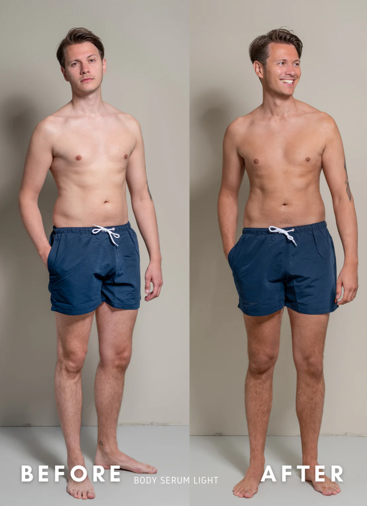 ✔ Cirkelbewegingen: Verspreid het serum gelijkmatig in cirkelbewegingen, beginnend bij je benen en werk omhoog.