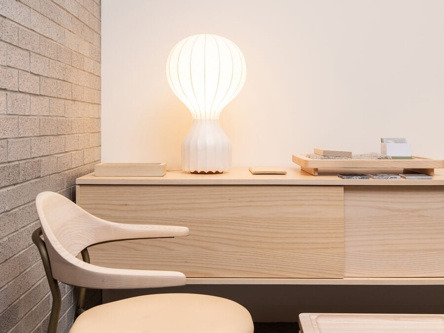 Een opvallend voorbeeld is de Random Light, een luchtige hanglamp die lijkt te zweven in de ruimte. Deze lamp, gemaakt van met hars gecoat garen, creëert een bijna etherisch lichteffect dat elke kamer een speelse maar toch verfijnde sfeer geeft.