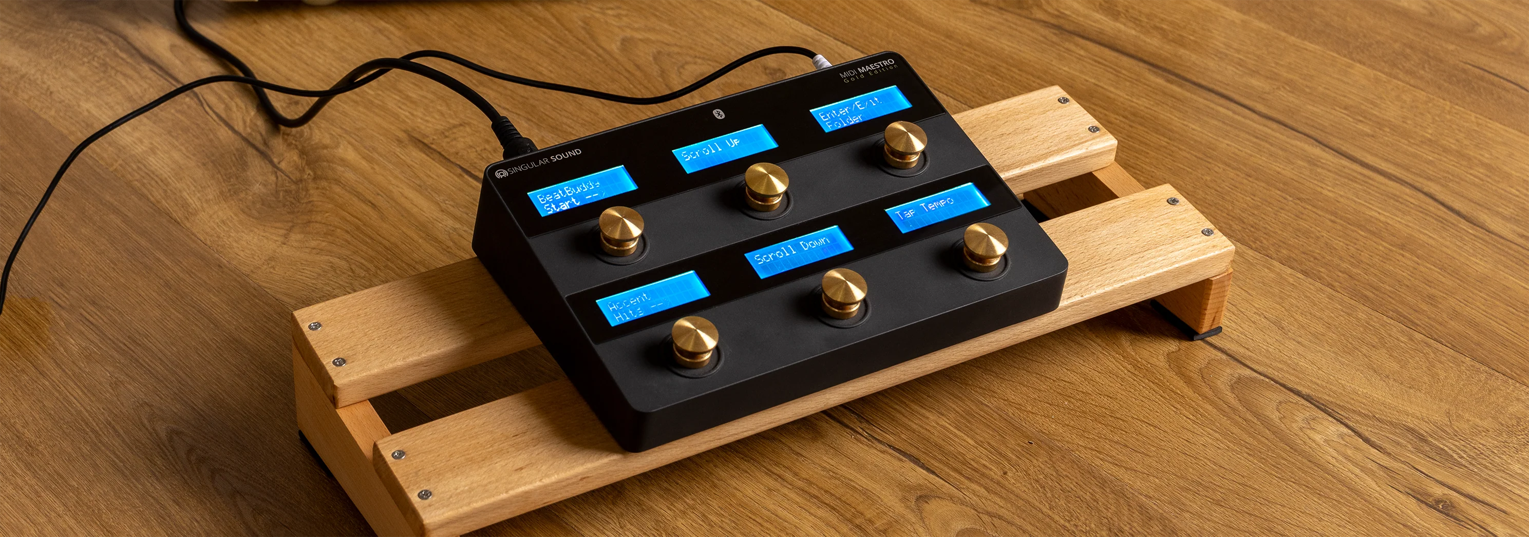 If you already own Singular Sound’s BeatBuddy (a foot-controlled drum machine) or the Aeros Loop Studio, you’ll love how easily the MIDI Maestro fits in. It comes with predefined modes tailored specifically to these devices, allowing you to control loops, start fills, switch parts, and more—all without lifting your hands from your instrument.