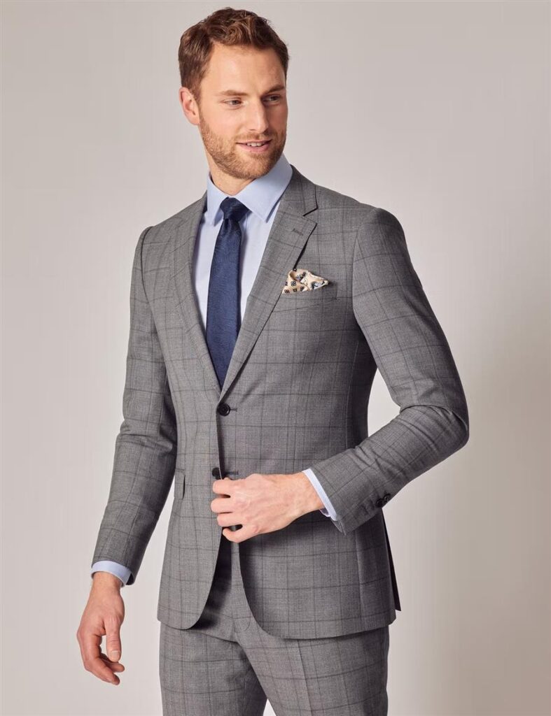For those who appreciate a touch of heritage in their attire, Hawes & Curtis Grey Prince of Wales Check Suit is a standout option. This suit features the iconic Prince of Wales check, a pattern that has long been associated with British royalty and elegance. Made from pure wool, this suit is not only luxurious but also incredibly comfortable.