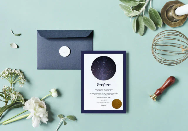 One of the most cherished elements of a star-naming gift package is the personalized certificate that comes with it. This certificate records the star’s name, along with its precise coordinates in the night sky, ensuring that the recipient can always find their star. These certificates are often beautifully designed, printed on high-quality paper, and ready for framing, making them a stunning addition to any home.