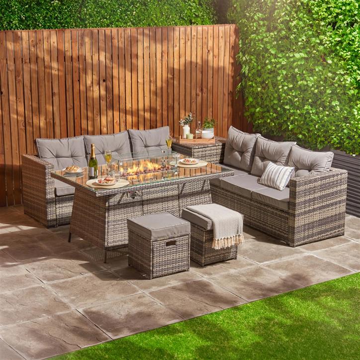 Want something that doesn’t look like your nan’s old conservatory furniture? The Milan set hits that modern sweet spot. Clean lines, a grey rattan finish, and adjustable layout make this the most “Instagrammable” of the lot.