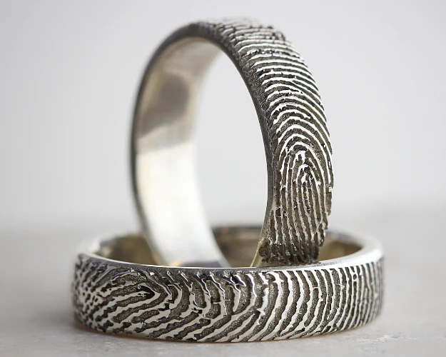 - Fingerprint Ring: holds a real fingerprint pressed into solid metal, making it ideal for memorials, births, or long-distance gifts.